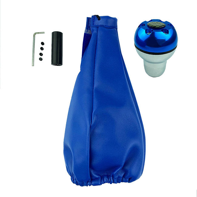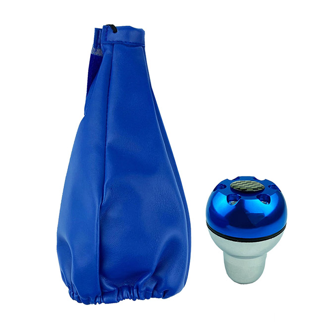 Πόμολο Και Φυσούνα Λεβιέ Ταχυτήτων Μπλε Δερματίνη