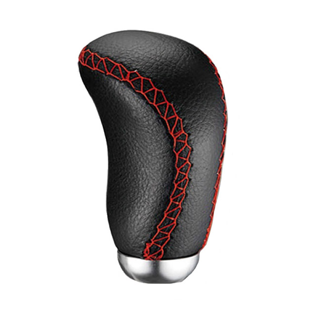 Πόμολο Λεβιέ Ταχυτήτων Δερμάτινο Οβάλ Μαύρο Με Κόκκινη Ραφή