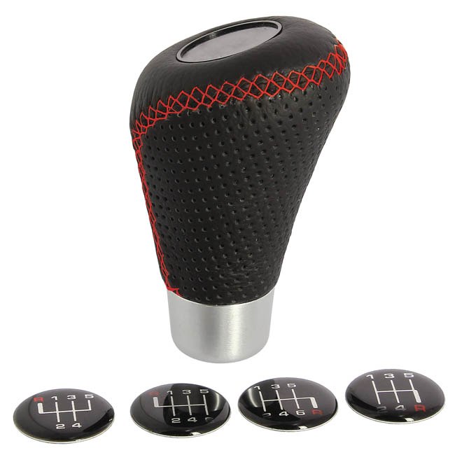 Πόμολο Λεβιέ Ταχυτήτων Universal Δερματίνη Μαύρο Με Κόκκινες Ραφές Οβάλ Για Κανονική Όπισθεν 2505GRR