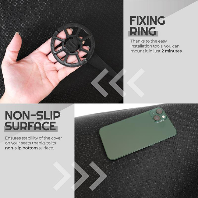 Προστατεύει από λεκέδες, γδαρσίματα, καθημερινή φθορά και διατηρεί το κάθισμα του αυτοκινήτου στην αρχική του όψη.