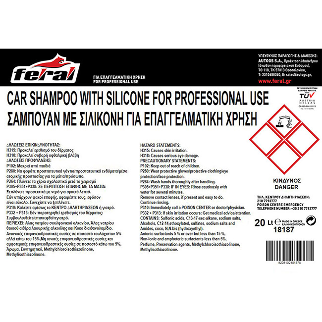 Σαμπουάν Αυτοκινήτου Με Σιλικόνη Feral 20lt 1 Τεμάχιο