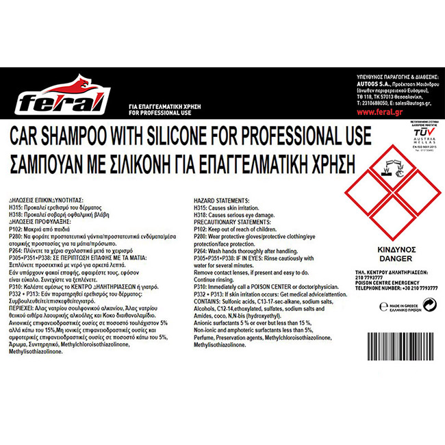 Σαμπουάν Αυτοκινήτου Με Σιλικόνη Feral 4lt 1 Τεμάχιο