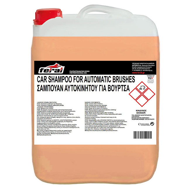 Το σαμπουάν βούρτσας Feral είναι ένα μοναδικό επαγγελματικό προϊόν που καθαρίζει και συντηρεί το αυτοκίνητό σας. Αποτελεί την ιδανική οικονομική λύση για τους επαγγελματίες, λόγω της καταλληλότητάς του για πλύσιμο με το χέρι, όπως και για μηχανές πλυσίματος.