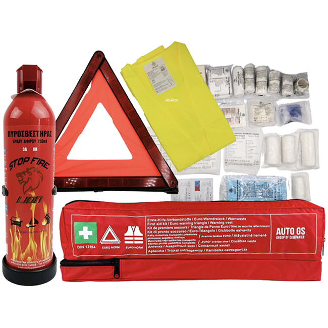 Πλήρες σετ πρώτων βοηθειών για το αυτοκίνητο σας, το οποίο περιλαμβάνει όλα τα απαραίτητα βοηθήματα σε περίπτωση ανάγκης.