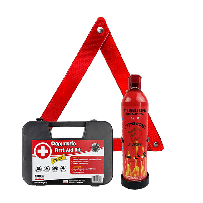 Σετ Ασφαλείας Αυτοκινήτου / Σετ ΚΤΕΟ Σε Θήκη Με Φερμουάρ Τρίγωνο, Φαρμακείο, Πυροσβεστήρας 750 ml 3 Τεμάχια