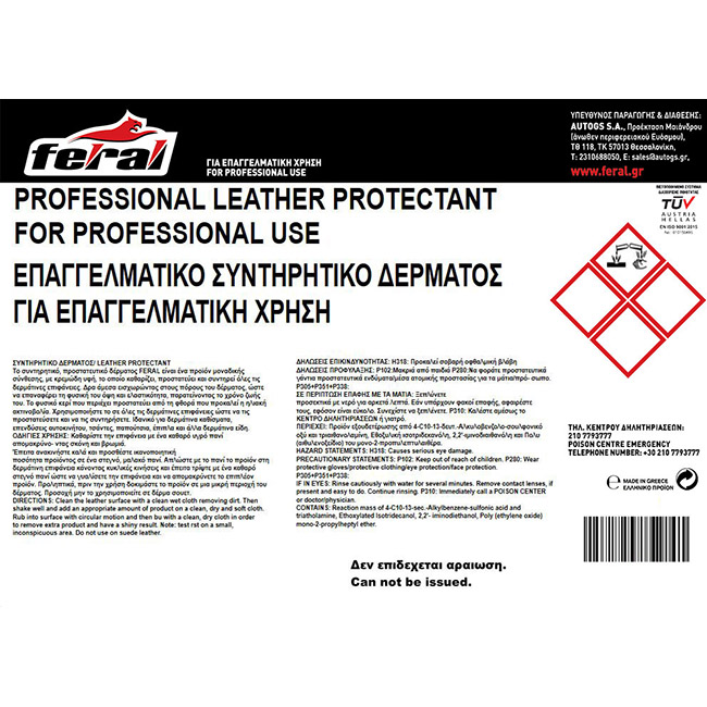 Συντηρητικό Και Προστατευτικό Δέρματος Feral 200lt 1 Τεμάχιο
